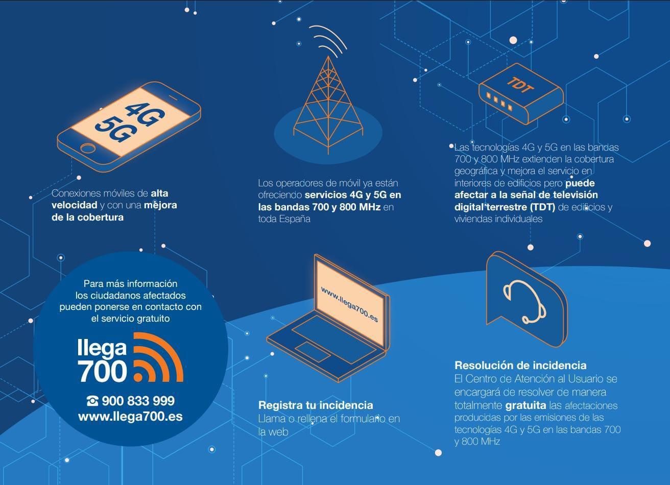 Sin embargo, el uso de estas frecuencias puede ocasionar en algunos casos interferencias en la señal de la Televisión Digital Terrestre (TDT), afectando a viviendas particulares o comunidades de propietarios. Para garantizar que ningún ciudadano pierda acceso a sus canales habituales, se ha puesto en marcha el servicio Llega700, encargado de atender y resolver estas incidencias.